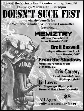 DOESN'T SUCK FEST!!!    .....a Freakadelic Funk-Metal Party for those who don't suck: KEMIZTRY, From the Shadows, Eric Carbery, G-Love, special guest Brett Caswell @ Victoria Event Centre Mar 16 2006 - Feb 8th @ Victoria Event Centre