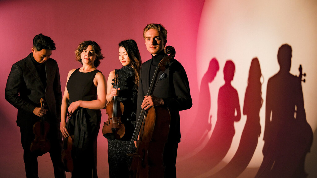 Praised for their “virtuosity, visceral expression, and rare unity of intention” (Boston Globe), the Viano Quartet is one of the most sought-after performing young ensembles today and is currently in-residence at the Chamber Music Society of Lincoln Center Bowers Program from 2024-2027. Since winning First Prize at the 2019 Banff International String Quartet Competition, they have traveled to nearly every major city across the globe, captivating audiences in New York, London, Berlin, Hong Kong, Vancouver, Paris, Beijing, Toronto, Lucerne, and Los Angeles. In summer 2023, the Viano Quartet released Portraits, its debut EP, on the Curtis Studio Label. The quartet has held artist residencies at Meadows School of the Arts at Southern Methodist University, Curtis Institute, and Colburn Conservatory, and have taught masterclasses at institutions such as Duke University, Northern Michigan University, Virginia Commonwealth University, and the University of British Columbia. Recently, they’ve been selected as the inaugural group for a new guest residency at the Music in the Morning series in Vancouver until 2025.