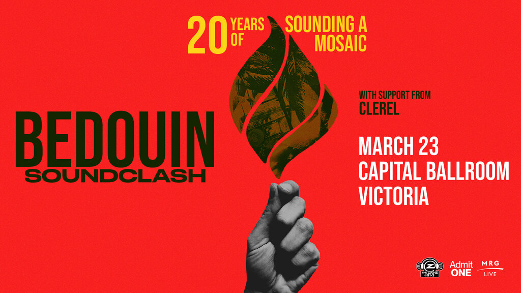 Formed in 2001 and named after Israeli dub artist/producer Badawi’s1996 release, Bedouin Soundclash’s debut album Root Fire(2001) received critical acclaim before sophomore album Sounding a Mosaic (2004) sent the band global, culminating in a series of sold-out shows and festival appearances around the world. The album featured the smash hit single “When The Night Feels My Song”, produced by punk-hardcore royalty Darryl Jenifer of Bad Brains, and the band went on to pick up their first JUNO Award in 2006 for Canada’s Best New Group, along with numerous accolades around Europe.