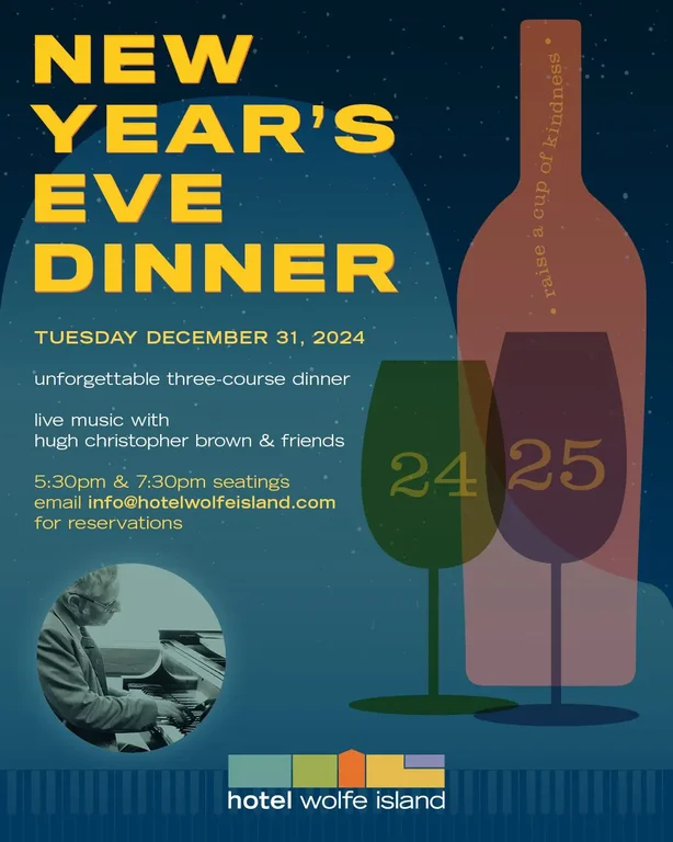 Join us! Let’s welcome 2025, celebrate the past year with friends and neighbours, an unforgettable three-course meal, and live music from Hugh Christopher Brown & Friends.