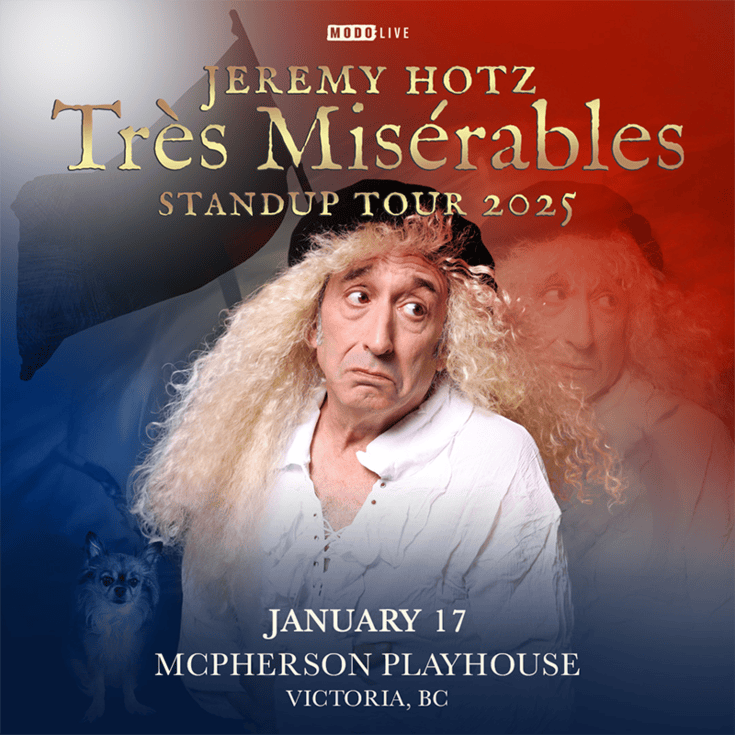 Jeremy Hotz invites you to join him and his renowned dog, Shack on their journey across North America as they celebrate the milestone of his 10th national tour titled “Très Misérables!”