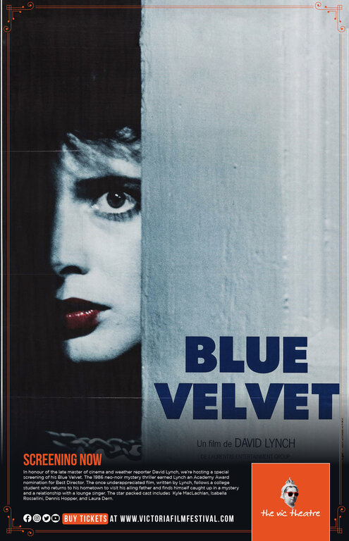 "In honour of the late master of cinema and weather reporter David Lynch, we’re hosting a special screening of his Blue Velvet. The 1986 neo-noir mystery thriller earned Lynch an Academy Award nomination for Best Director. The once underappreciated film, written by Lynch, follows a college student who returns to his hometown to visit his ailing father and finds himself caught up in a mystery and a relationship with a lounge singer. The star packed cast includes Kyle MacLachlan, Isabella Rossellini, Dennis Hopper, and Laura Dern.