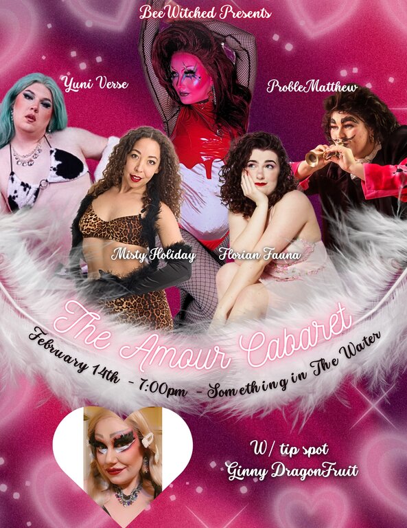 This lustful and affectionate evening, we are surronded by love through the art of drag and burlesque. A cast of love birds will entice you all night, as you enjoy delicious drinks of all kinds from Something in The Water.