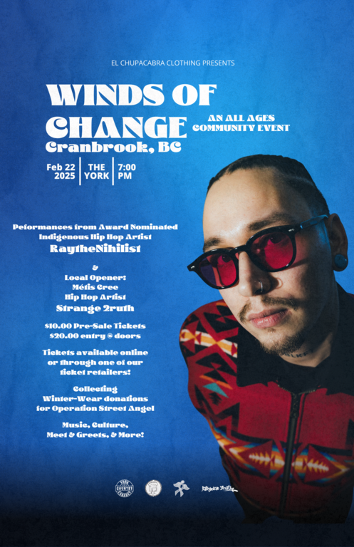Winds of Change is a project designed by RaytheNihilist to reach out to various communities, both Indigenous and non-Indigenous, creating a welcoming and dynamic environment for people of all ages to participate in cultural revitalization and music.