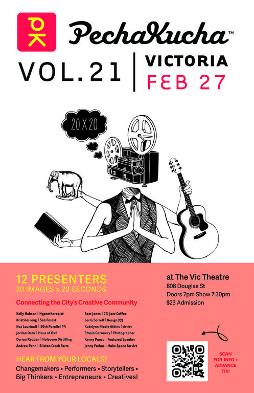 12 BRAVE LOCAL CREATIVES, ENTREPRENEURS & CHANGE-MAKERS will inspire, entertain & educate us with dynamic and captivating presentations (PKN-style: 20 slides x 20 seconds) with a wild variety of topics!