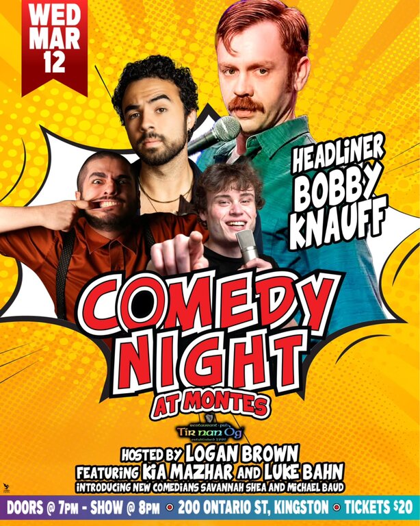 Comedy night: Bobby Knauff, Logan Brown, Kia Mazhar, Luke Bahn, Savannah Shea, Michael Baud @ Monte's Mar 12 2025 - Feb 7th @ Monte's