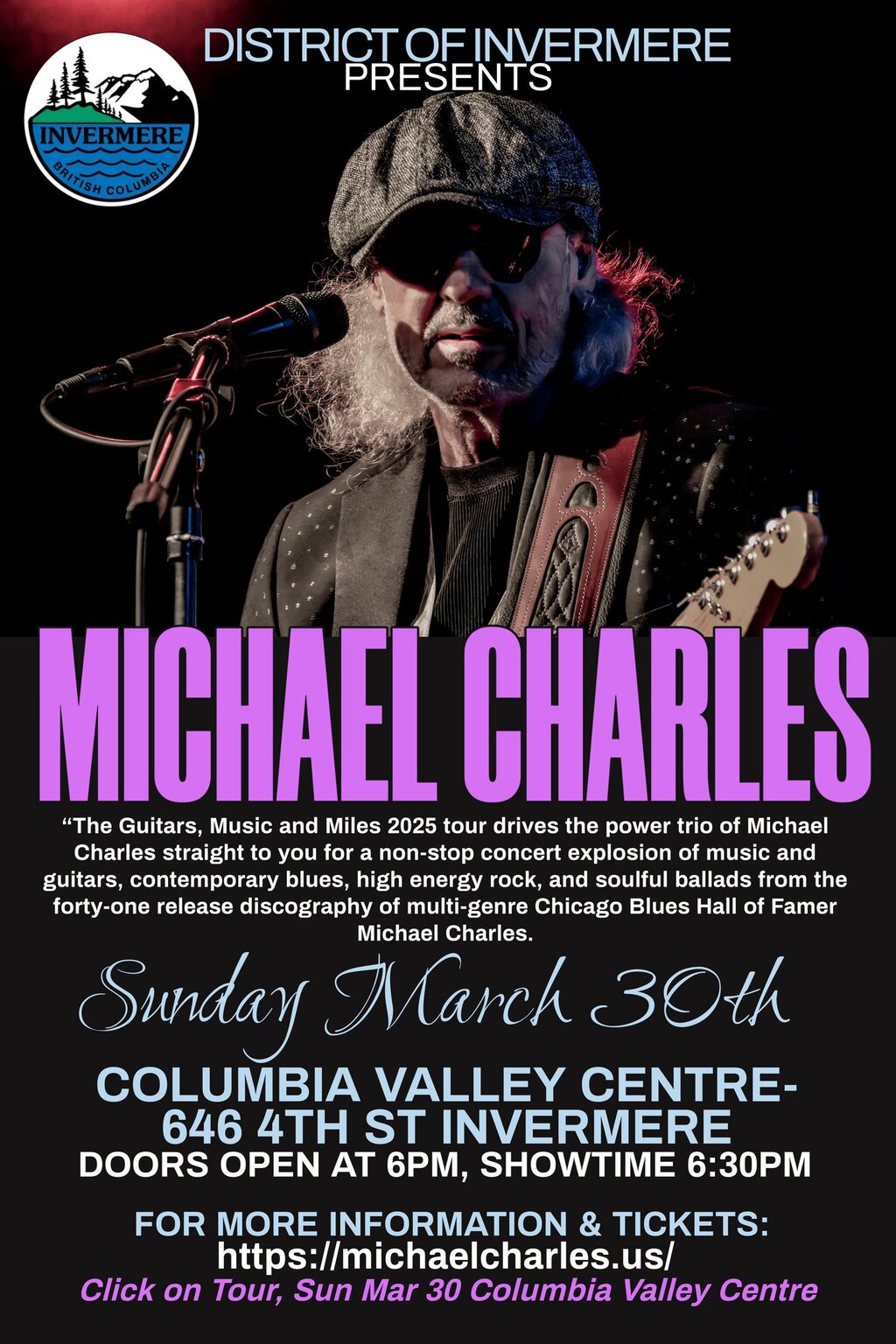 Come join us for an unforgettable evening of blues and rock music at Columbia Valley Centre. The District of Invermere proudly presents Michael Charles!