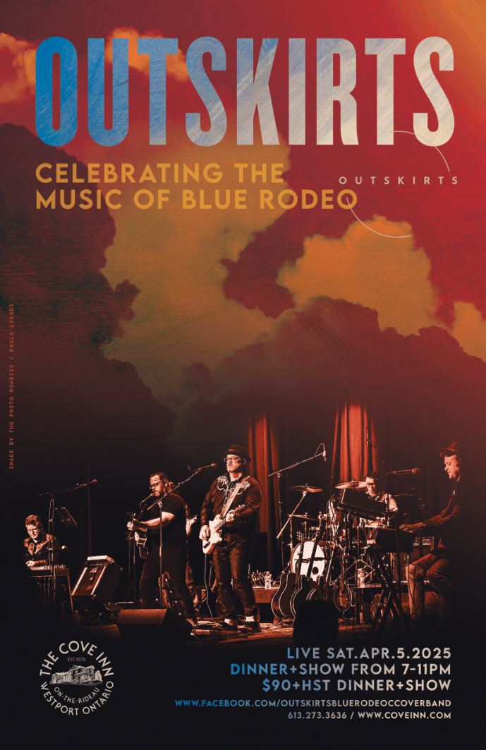 Join us for live music at The Cove on Saturday April 5th, 2025 from 7-11pm for Outskirts – Celebrating the Music of Blue Rodeo. $90 + HST gets you dinner and the show.
