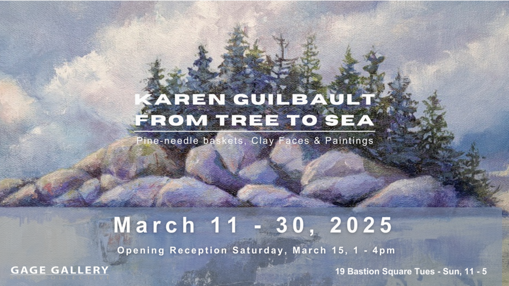 In the main gallery, Karen will serve as the featured solo artist, bringing you From Tree to Sea: Pine Needle Baskets, Clay Faces & Paintings, scheduled to run from March 11 to 30, 2025.