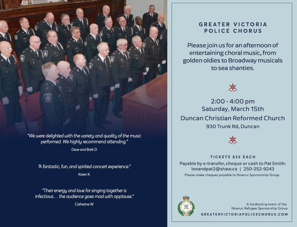Come and join us for an afternoon of music performed by the world renowned Greater Victoria Police Chorus on March 15, 2025.