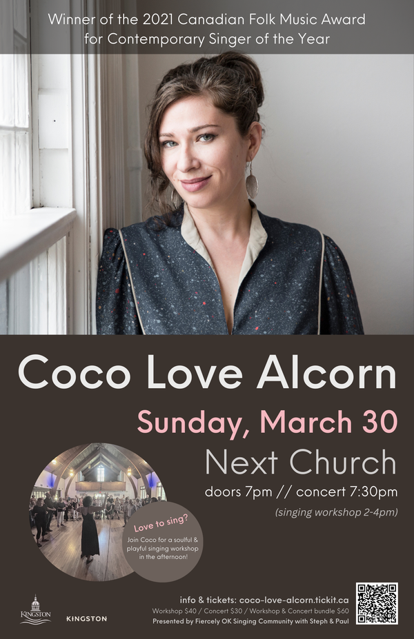 In this workshop Coco Love Alcorn will lead us through some simple call and response singing, some harmonies and rhythms and also tickle our playful sides by wee forays into the world of vocal improvisation.