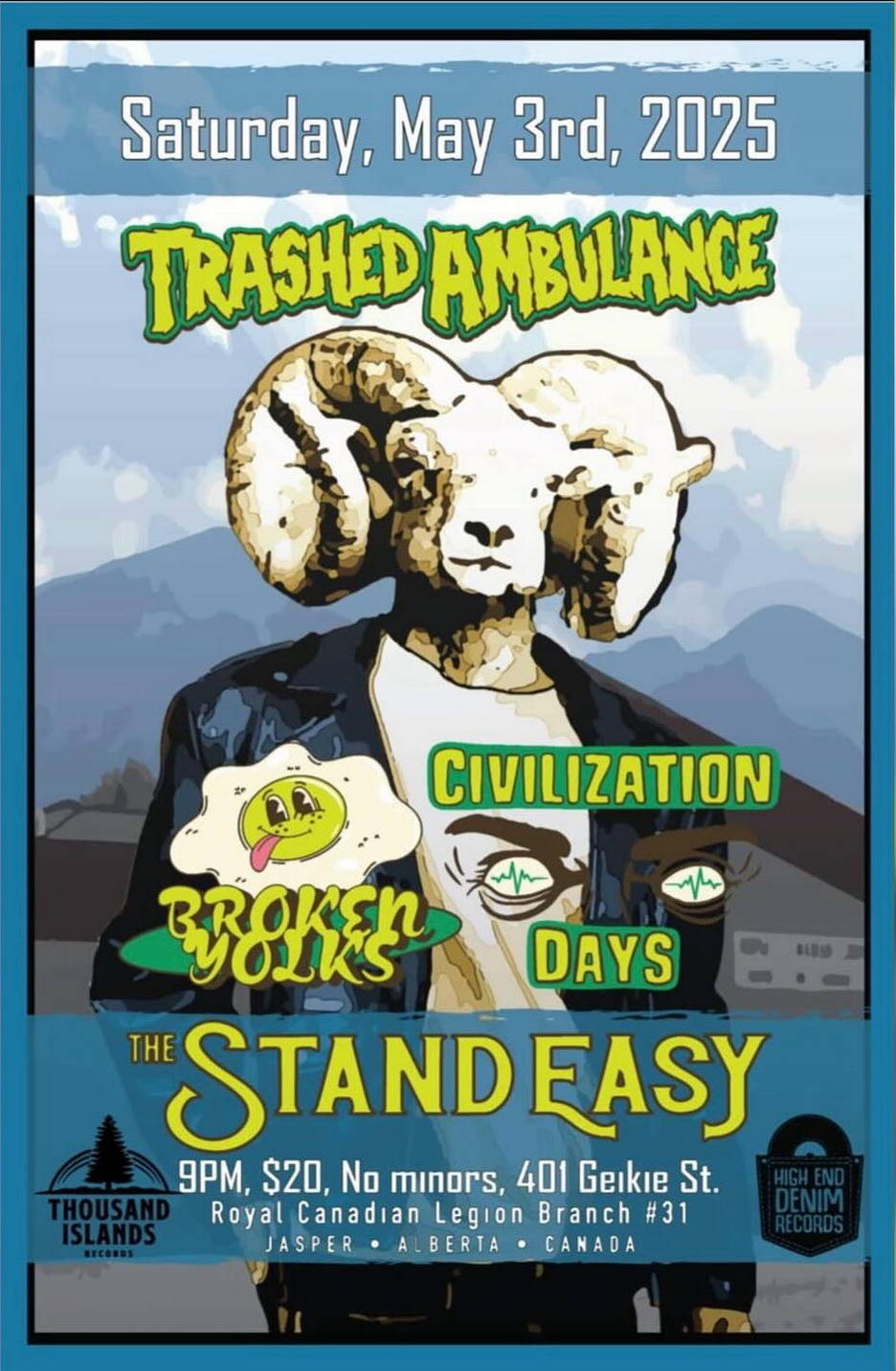 Sat. May 3rd 2025 Jasper Legion: The Stand Easy Jasper Alberta $20