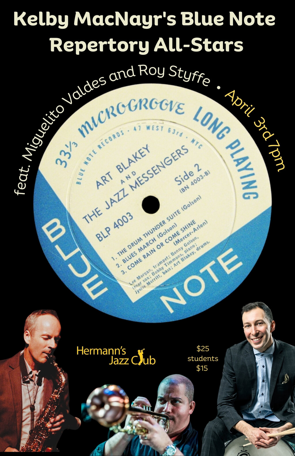 Kelby MacNayr's Blue Note Repertory All-Stars - Jan 16th @ Hermann's Jazz Club