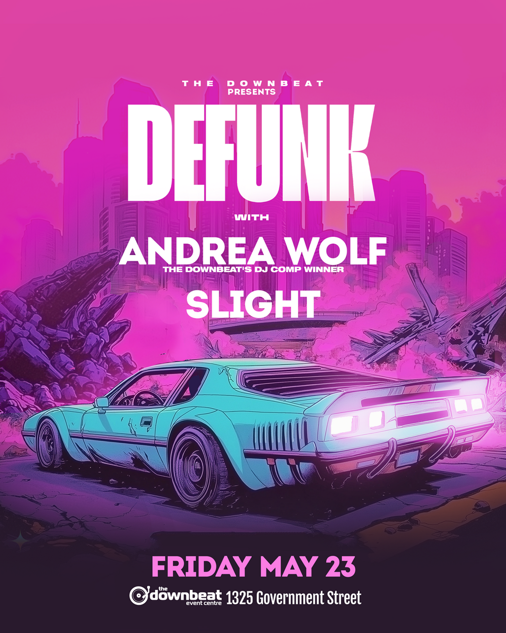 Warming things up for Defunk we have our DJ competition winner Andrea Wolf and to open the show and a special extended set from Slight- DJ Competition judge, local hustler and the man behind Full Spec Entertainment to show us how to warm up a room.