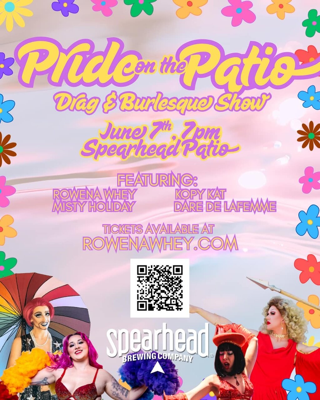 Join the Queen of Wheat, Rowena Whey, and special guest drag king Dare de LaFemme, and burlesque artists Kopy Kat, and Misty Holiday, as they tear up the newly renovated patio at spearhead!