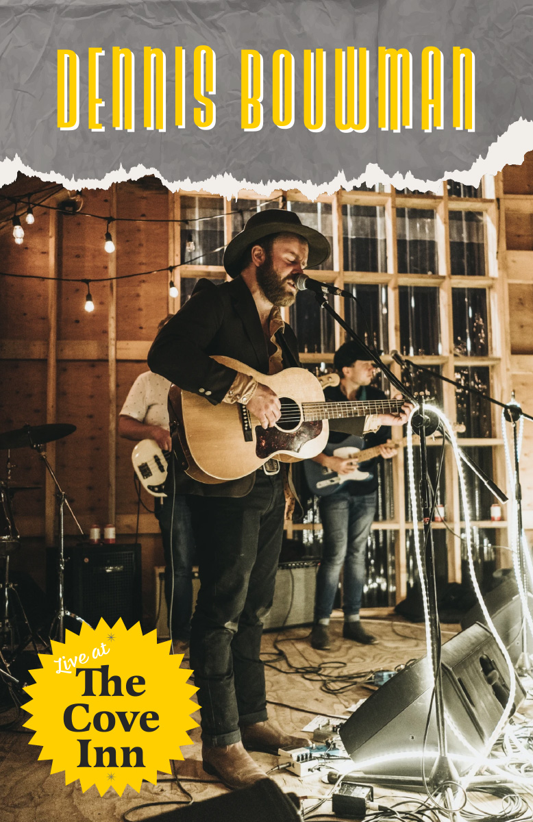 If you love original and gritty, soulful country folk, join us for live music at The Cove on Saturday, May 17th, 2025 from 5-8pm with Dennis Bouwman.