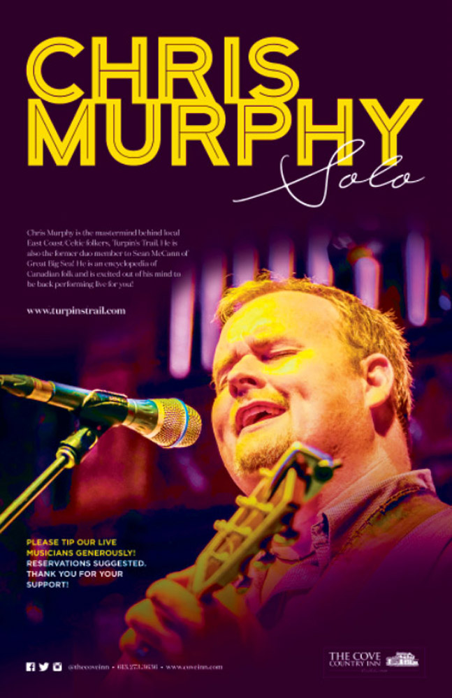 Join us for the best in East coast folk live music at The Cove on Friday, May 23rd, 2025 from 5-8pm with a special performance from Chris Murphy (of Turpin’s Trail).