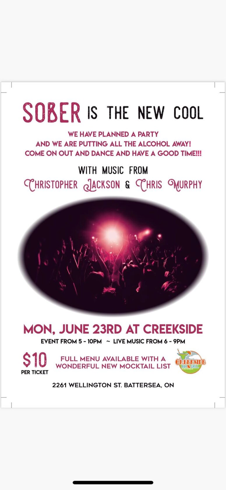 Sober is the New Cool: Christopher Jackson, Chris Murphy @ The Creekside Bar & Grill Jun 23 2025 - Jan 9th @ The Creekside Bar & Grill