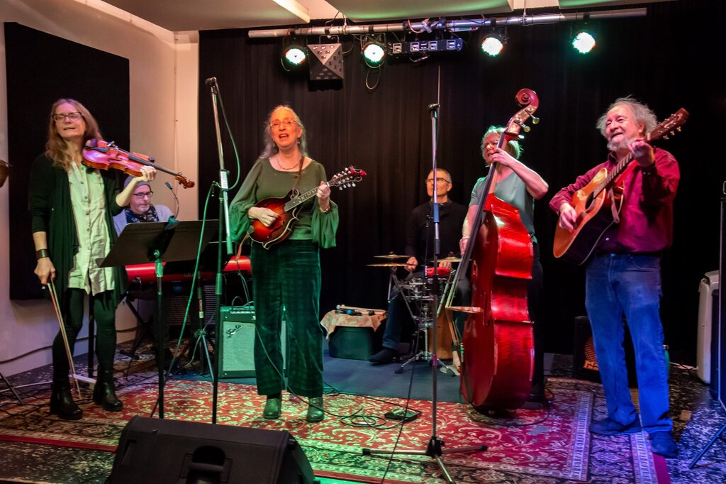 Illiteratty is a six-member meta-folk band based in Vancouver, meta-folk meaning original swing, European Cabaret, Ambient, Celtic, Rockabilly, a cappella, Folk, World, and Pop (did we mention Folk?) With sharp lyrics and up to five-part vocals, Illiteratty’s music is compassionate, funny, angry, idiosyncratic, intelligent, extremely varied, and original! With instrumentation from three to six musicians, the band’s full complement includes Earle Peach, guitar & vocals; Ellen Van Der Hoeven, mandolin & vocals; Barb Dominik, violin & vocals; Natalie Philp, standup bass & vocals; Mark Douglas, keyboards & vocals; and Wes Skakun on percussion. Care to take a listen? Illiteratty has three albums available to stream at illiteratty.bandcamp.com!