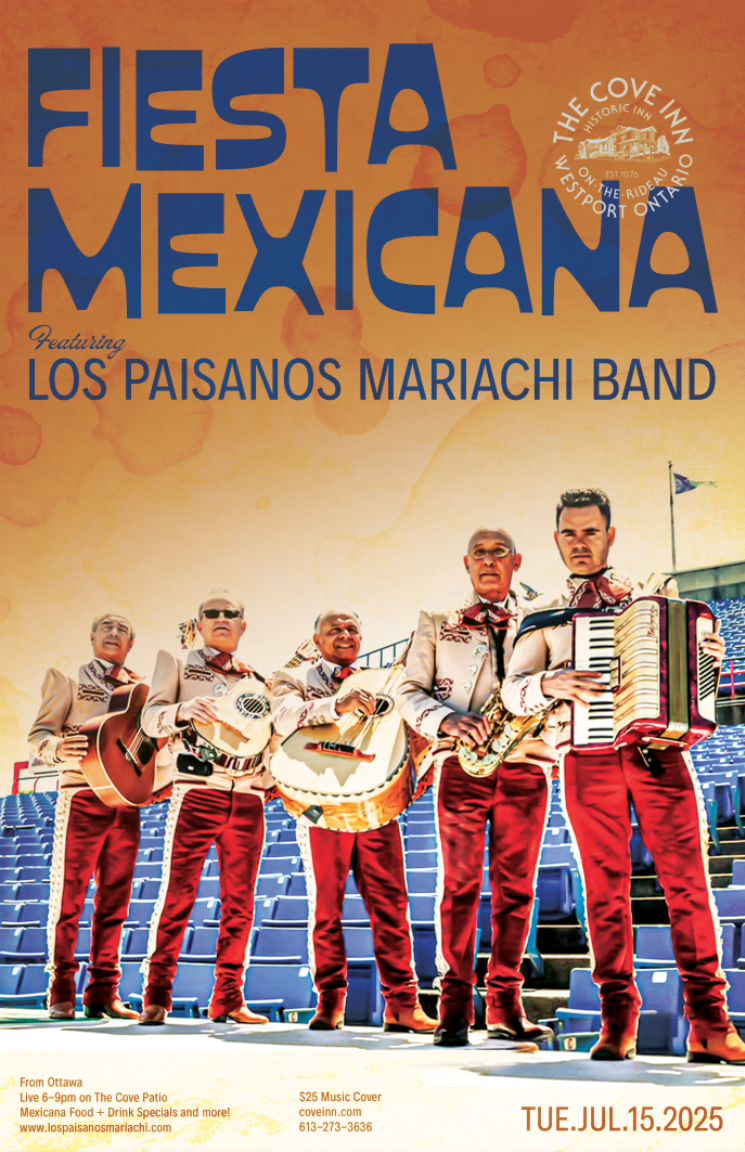 Enjoy an evening of lively Mexican music on the patio with Ottawa’s Los Paisanos Mariachi Band from 6-9pm on Tuesday, July 15, 2025 at The Cove Inn! Mexican Food + Drink Specials + More!