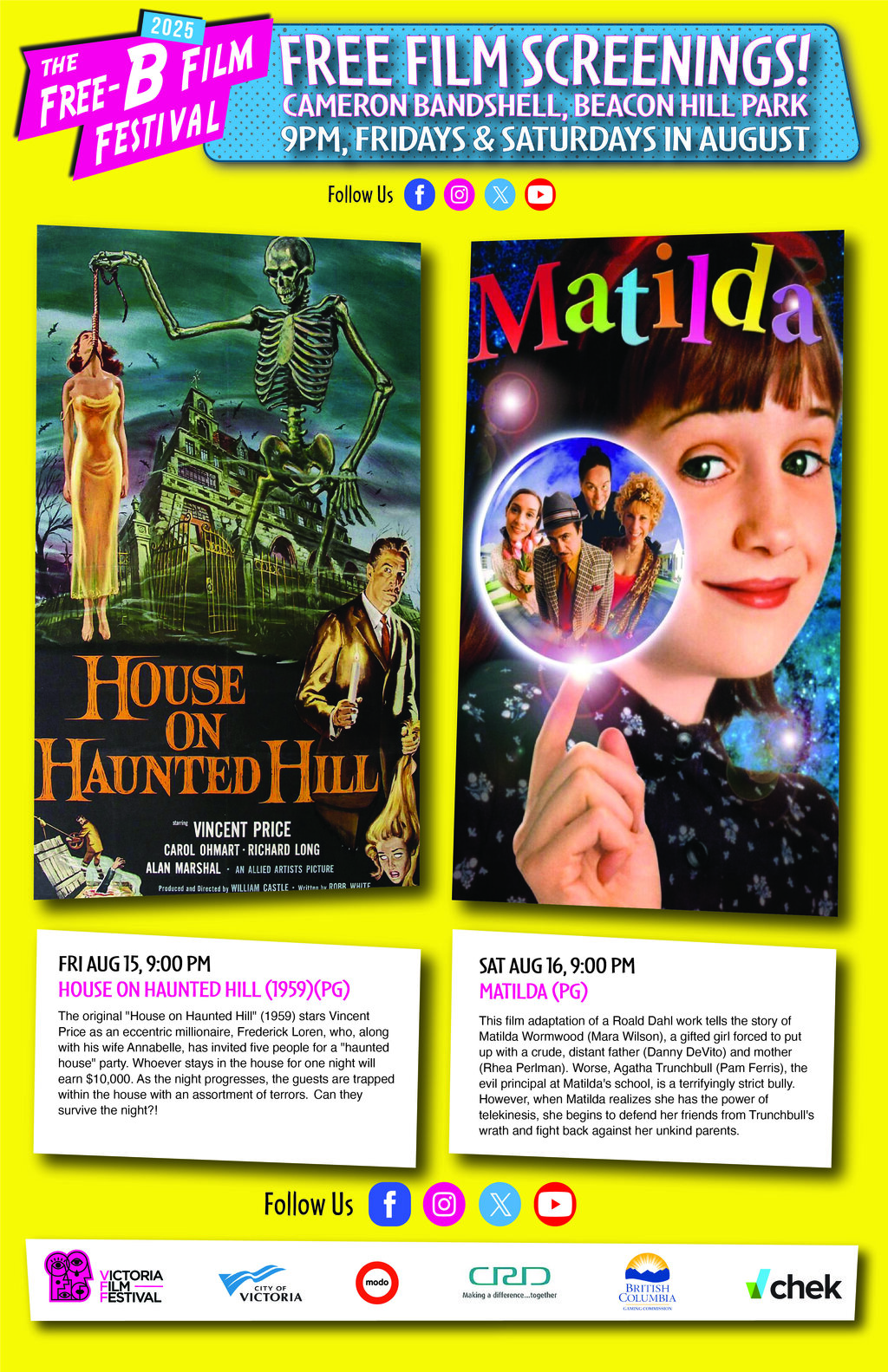 This film adaptation of a Roald Dahl work tells the story of Matilda Wormwood (Mara Wilson), a gifted girl forced to put up with a crude, distant father (Danny DeVito) and mother (Rhea Perlman). Worse, Agatha Trunchbull (Pam Ferris), the evil principal at Matilda's school, is a terrifyingly strict bully. However, when Matilda realizes she has the power of telekinesis, she begins to defend her friends from Trunchbull's wrath and fight back against her unkind parents.