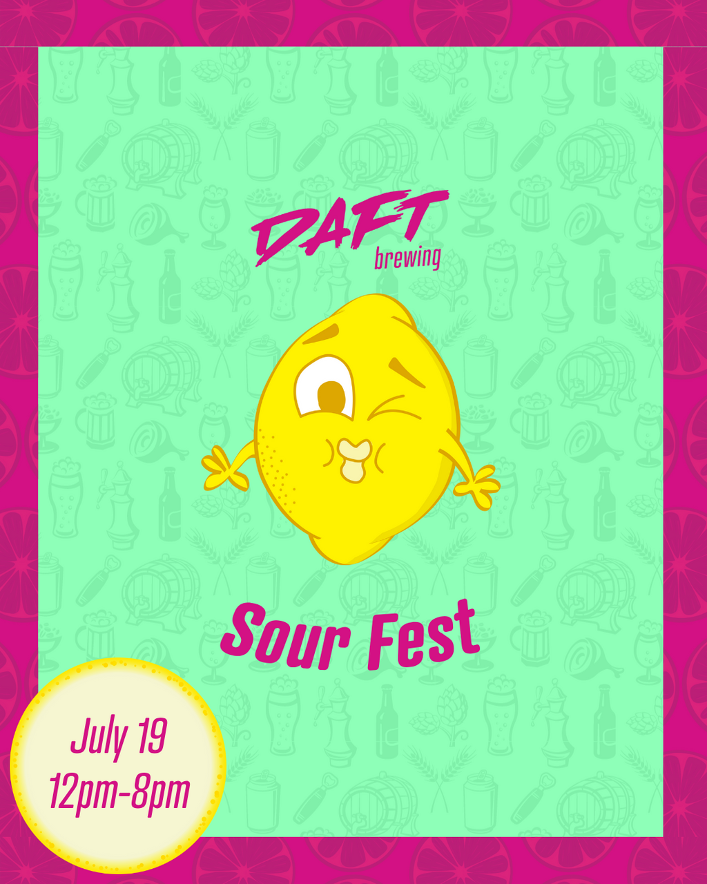 Sat. July 19th 2025 + Add to Calendar Daft Brewing (No Minors)