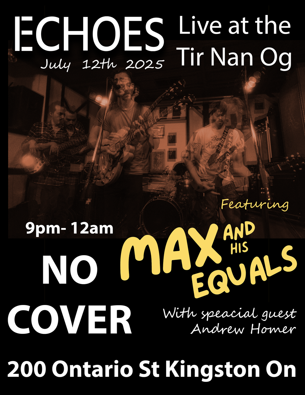 Echoes is hosting a night of alternative rock music at The Tir Nan Og with Max And His Equals and an acoustic set by special guest Andrew Homer.