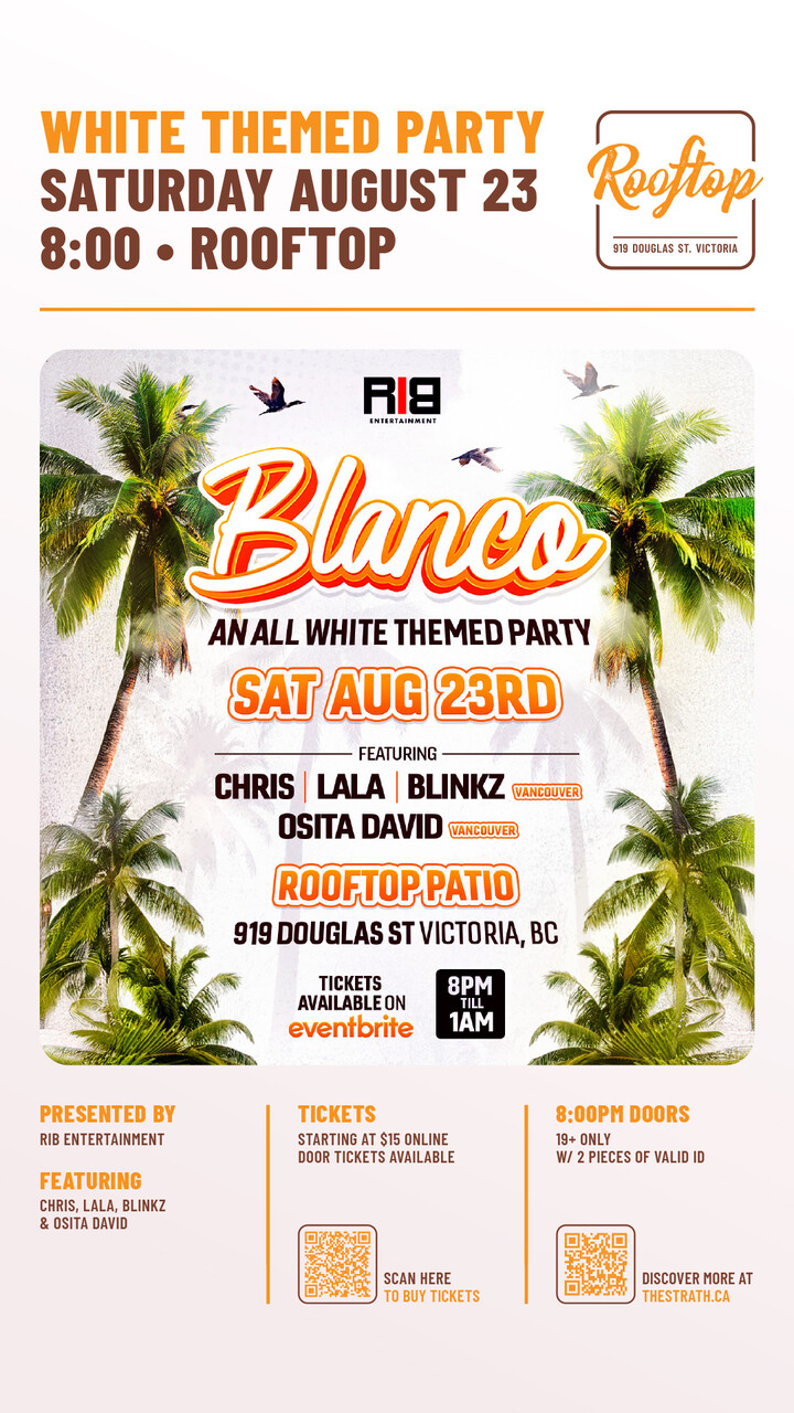 Purchase tickets here: https://www.eventbrite.ca/e/blanco-an-all-white-themed-party-tickets-1533307657479