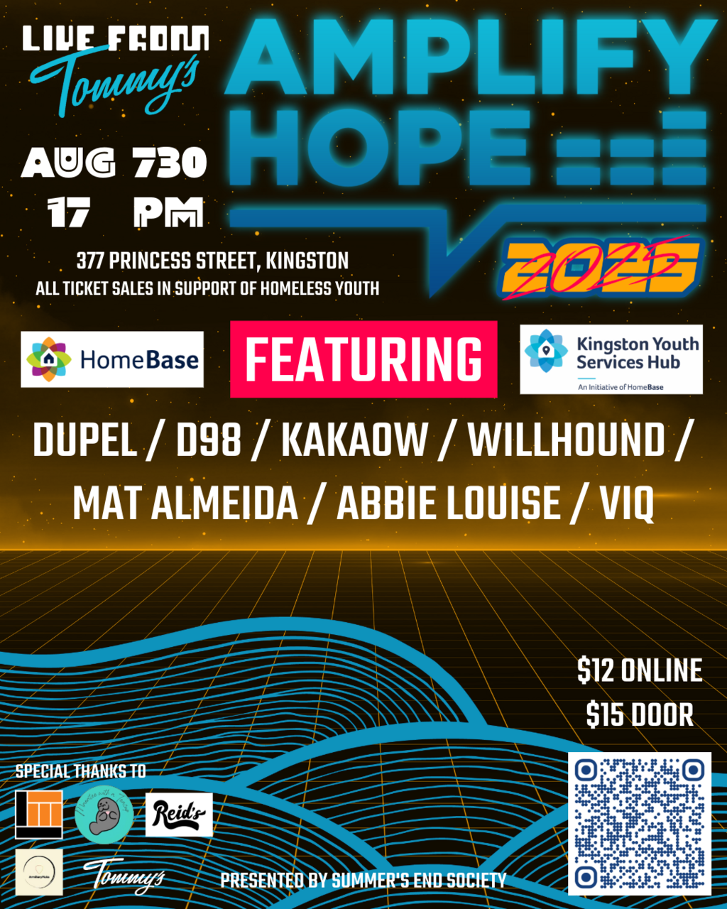 In support of HomeBase Kingston and Oneroof, come stop by for amazing local music to help a good cause. All ticket procedes go towards the Amplify Hope 2025 campaign, running from August 9th - September 9th.