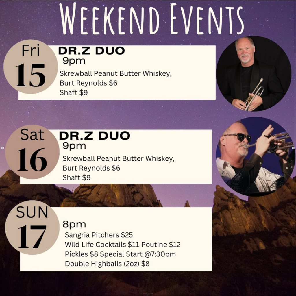 Dr Z Duo is a high energy duo with a killer trumpet/sax player. Typically, they play as a four piece with guitar, bass and drums. In the summer they have played street festivals (Lilac Festival, Taste of Calgary, Marda Gras etc). Other gigs have included corporate events, night clubs and private parties. If you want subtle background music or if you want center stage entertainment and partying Dr Z & the Boys can do the job.