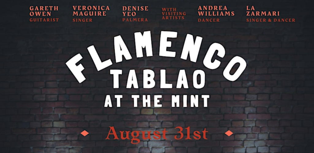 The event will include a live flamenco performance featuring Veronica Maguire, Gareth Owen, and Denise Yeo, with visiting artists Andrea Williams and La Zarmari.