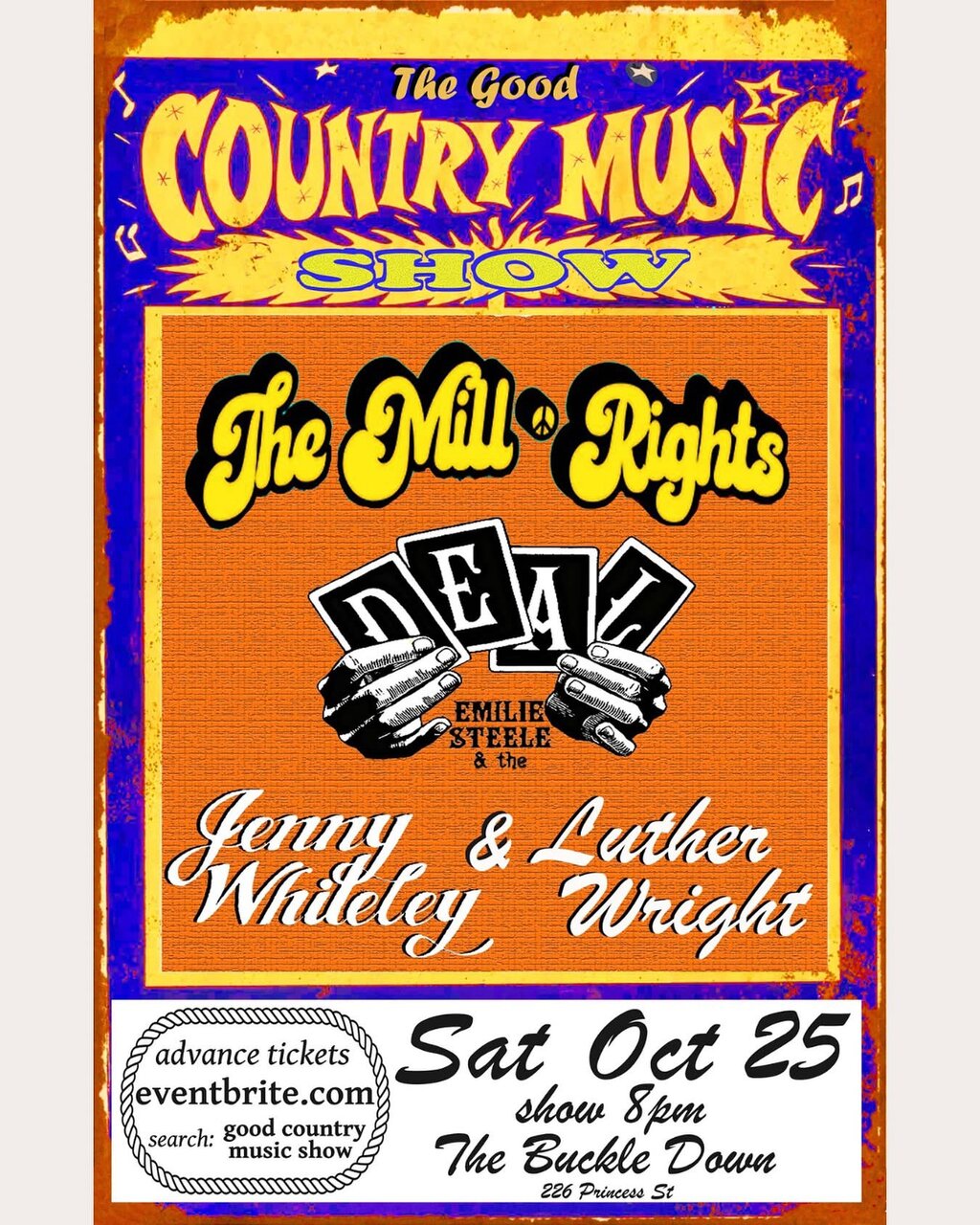 Live music by the great Jenny Whiteley & Luther Wright, Emilie Steele & The Deal, and The Mill-Rights.