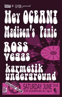 Saturday, June 3rd IMU & CiTR 101.9FM present Hey Ocean!, Madison's Panic, Ross Vegas & Karmetik Underground @ The RAILWAY CLUB, 579 Dunsmuir Street . 8pm