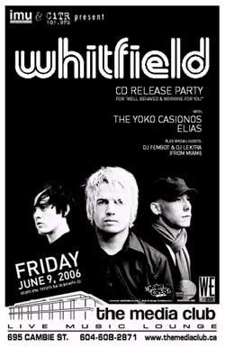 Friday, June 9th IMU & CiTR 101.9FM present Whitfield CD Release Party & BBQ w/ Yoko Casionos, Elias & DJ Fembot & DJ Lektra (from Miami) @ The MEDIA CLUB, 695 Cambie . 8pm / Cover $10 ~ $15 incl a CD! ~ Get your tickets @ http://www.themediaclub.ca/tickets.htm