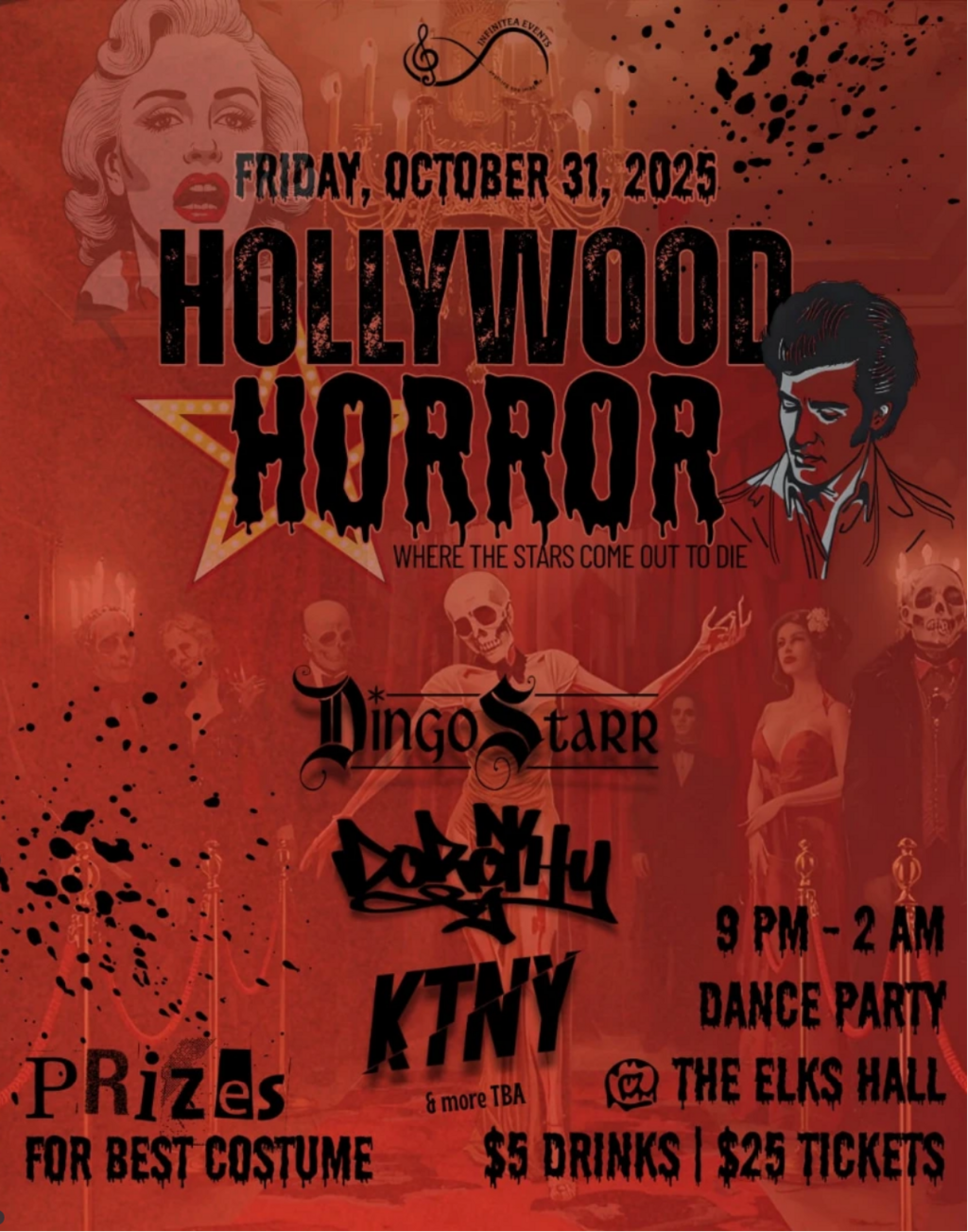 It's time to get glamorous & gory and dance the night away on the blood red carpet surrounded by dead stars and Hollywood Horror!!