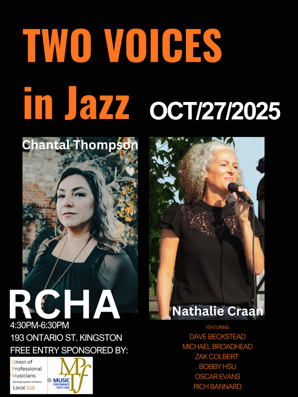TWO VOICES in Jazz: Chantal Thompson, Nathalie Craan @ The Club at the R.C.H.A. Oct 27 2025 - Jan 4th @ The Club at the R.C.H.A.