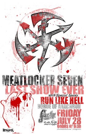 After years of faithfull service to the Gods of Metal (and Island Metal fans) Meatlocker Seven has decided to disband. THIS WILL BE THEIR FINAL SHOW!!! Special guest appearances by past members, and kick-ass supporting acts Run Like Hell and Horde of Anachron will ensure FULL METAL MAYHEM! Tix: $8 advance.