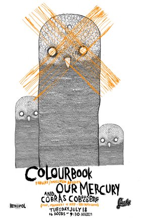 Colourbook performs with Edmonton Farway/Smallman recording artists Our Mercury. Plus, the debut of Cobras Cobras Cobras (featuring members of HRP and The Paper Cranes).