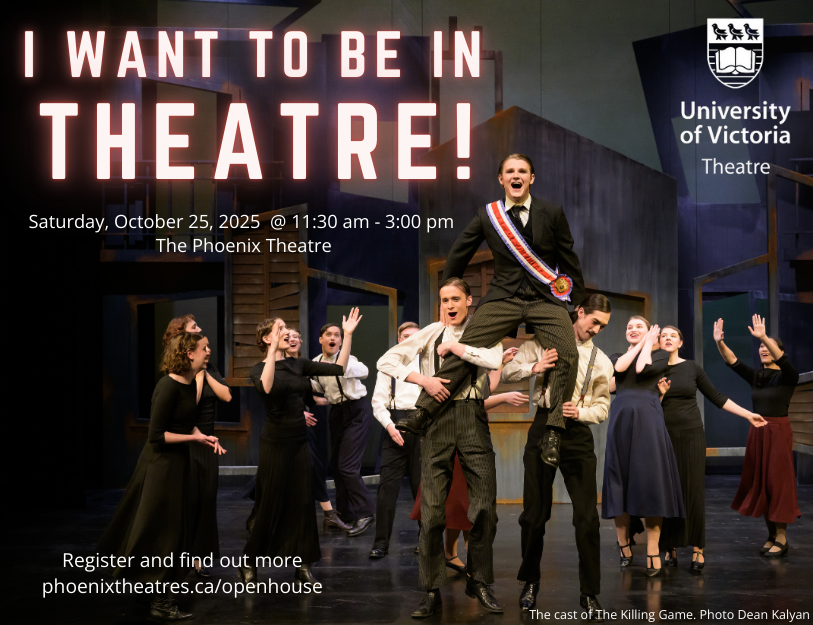 We invite prospective students and their families to sign up for our event to take a tour of the Phoenix Theatre, participate in 3 sessionals with a few of our professors to learn about the department, chat with current students about their experiences, and watch part of a rehearsal for our upcoming show "Our Town" by Thornton Wilder.