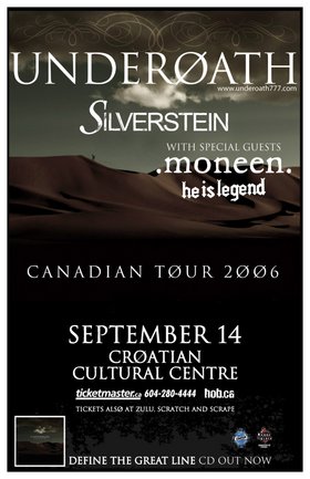 Silverstein formed in Burlington, Ontario, on the outskirts of Toronto in 2000. Emerging from the thriving hardcore scene in their hometown, the band began honing their sound, and recording whenever possible. Two EPs followed and a former member of Grade began talking the band up to his friends at Victory Records. The band signed with Victory shortly afterward. They released When Broken Is Easily Fixed which went on to sell over 200,000 copies worldwide, earning the band a spot in Alternative Press' 100 Bands You Need To Know in the spring of 2005. Non-stop touring followed and Silverstein became one of the most talked about bands in the hardcore/emo scene. The band are coming off a slot opening for Fall Out Boy and a spot on the 2006 Warped Tour and look to build on this momentum opening for Underoath on this cross Canada tour this fall.