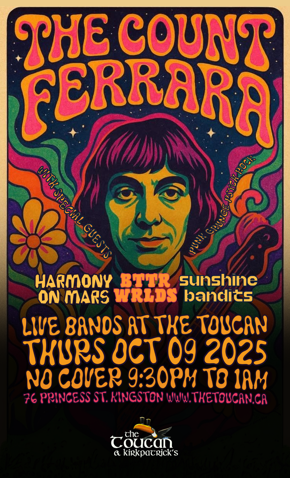 The Count Ferrara, Harmony on Mars, BTTR WRLDS, Sunshine Bandits @ The Toucan Oct 9 2025 - Dec 5th @ The Toucan