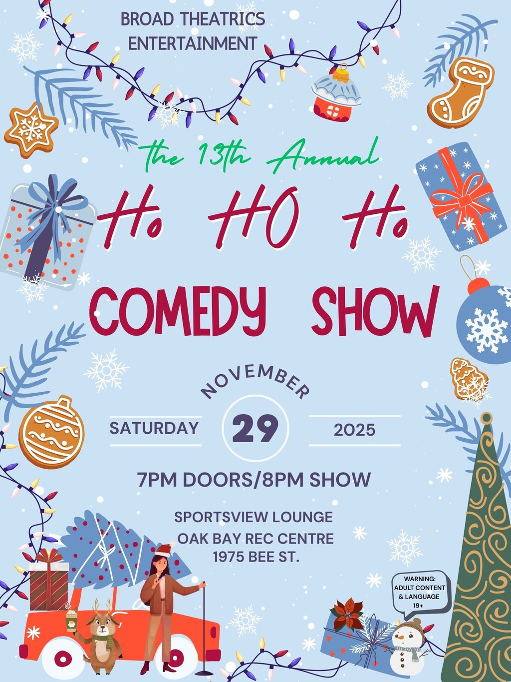 ADVANCE TICKETS are ONLY available on Eventbrite. All tickets, group table requests and the Wait List are managed by Broad Theatrics Entertainment (NOT the staff at Oak Bay Recreation.) Please contact Broad Theatrics directly with any inquiries.