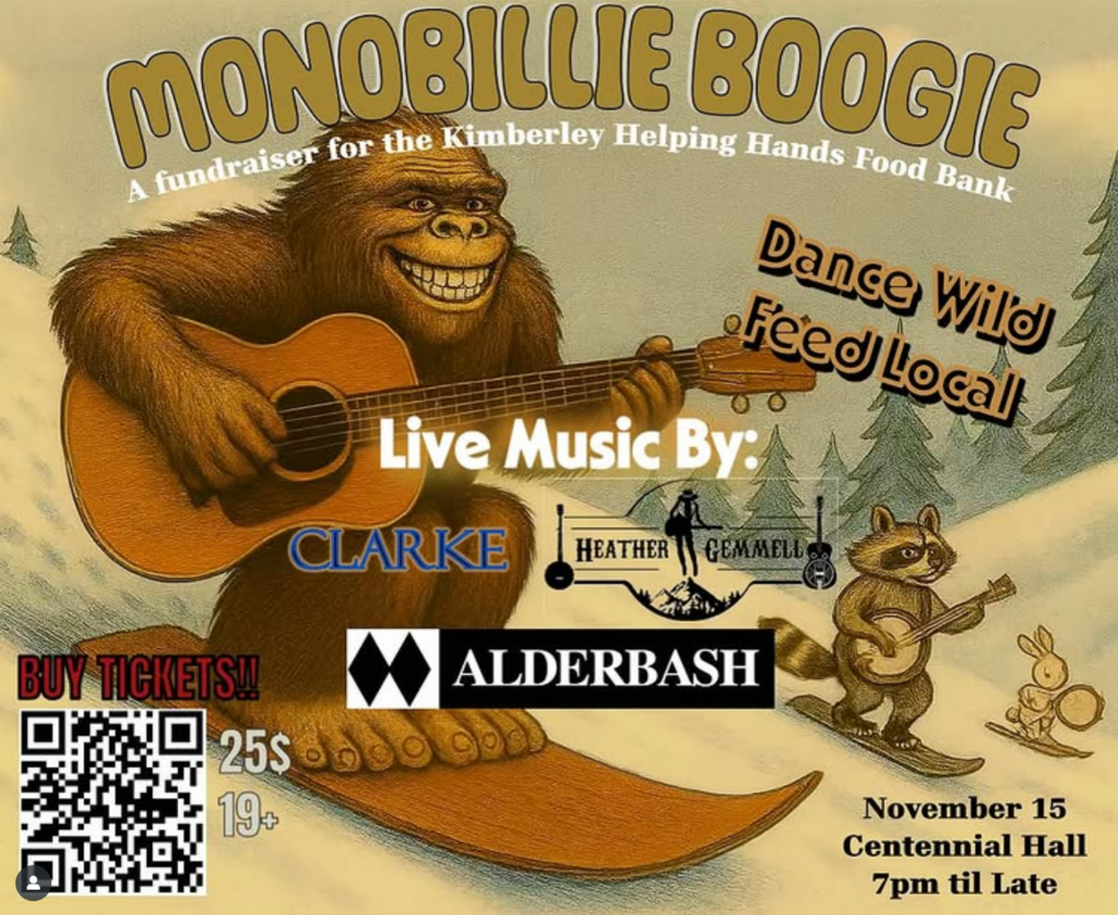 Proceeds from the evening go towards Kimberley Food Bank. We will be collecting warm clothing items for those in need and non perishable items for the food bank. Also, the harder you dance, the more it will snow!!!! So says Ullr!