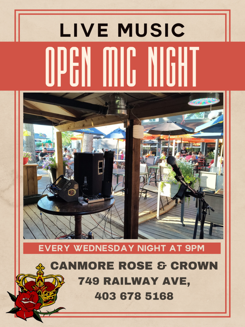 Join us every Wednesday night for an Open mic night here at The Canmore Rose & Crown.