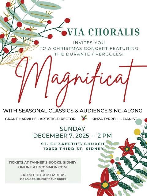 Via Choralis creates an inspiring atmosphere this season with the Durante/Pergolesi sacred Baroque choral masterpiece, the Magnificat. Led by Artistic Director Grant Harville with accompanist Kinza Tyrrell, the choir will also perform music by Rutter, Mendelssohn and Holst plus a selection of indigenous composer Andrew Balfour's works. All this plus a sing-along of your seasonal favourites!