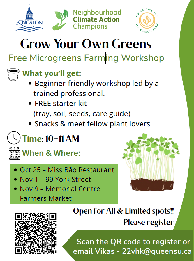 9am-11am No music- during workshop time! Grow Your Own Greens Workshop (registration required, free, limited spots available). Email: Vikas - [email protected]