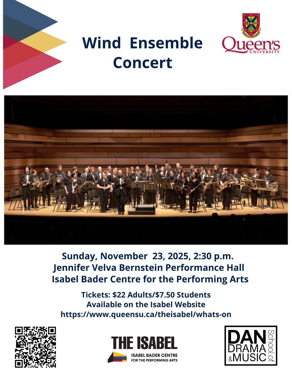The Queen’s University Wind Ensemble, directed by Dan Tremblay, will certainly resonate well in the beautiful acoustics of the Isabel concert hall. Compositional works by corner stone composers Holst and Malcom Arnold radiate with melancholic folk energy while Persichetti’s Psalm, Gjeilo’s Serenity, and Ticheli’s Rest transcend tranquility and ethereal stillness.