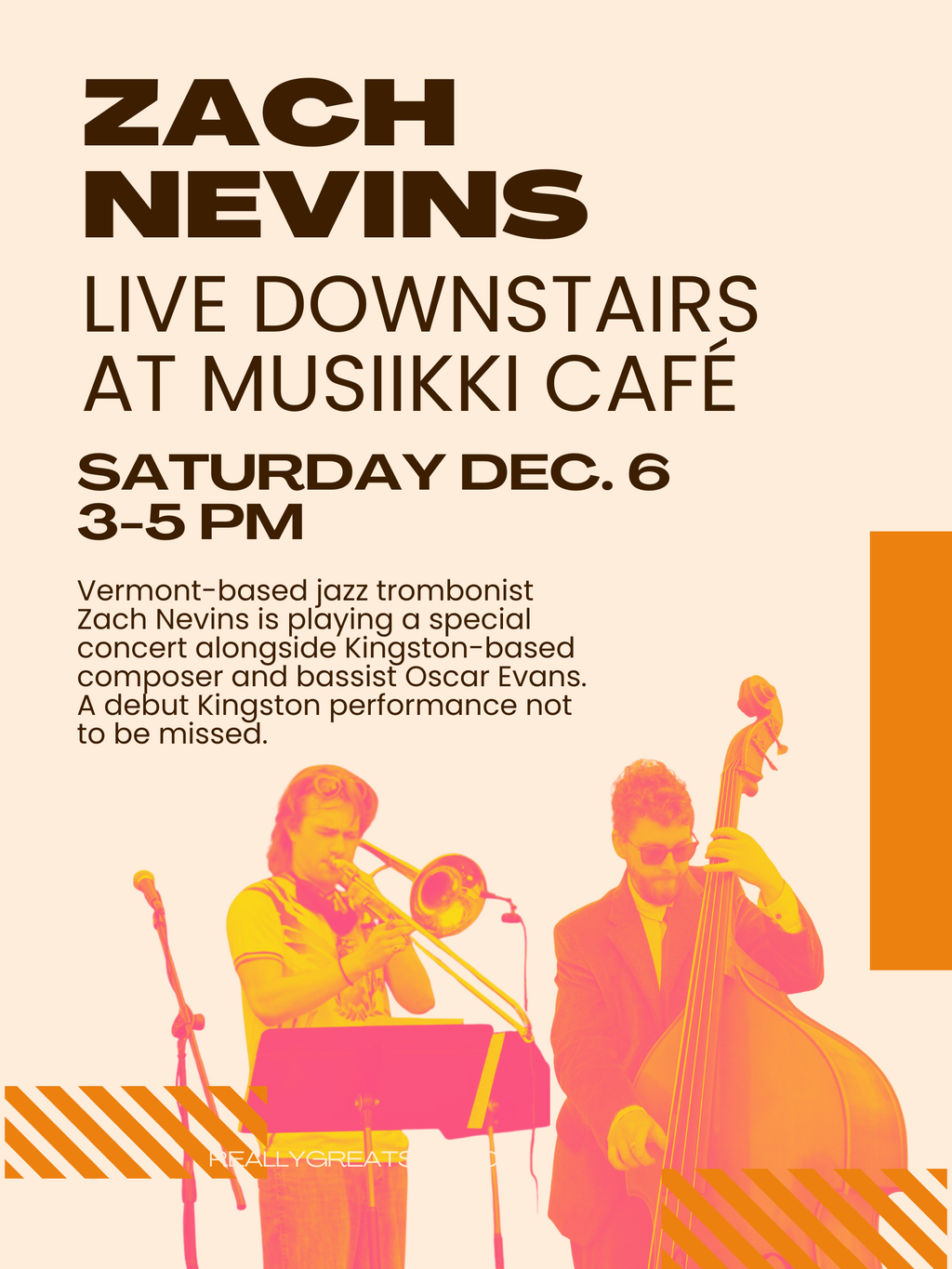 Zach Nevins will be leading an intimate performance downstairs at the Musiikki. Zach has played and studied music in Los Angeles and New York City. After meeting Oscar Evans at a late-night jam session as part of the Mourning Doves residency, the pair quickly made plans to perform music together again.