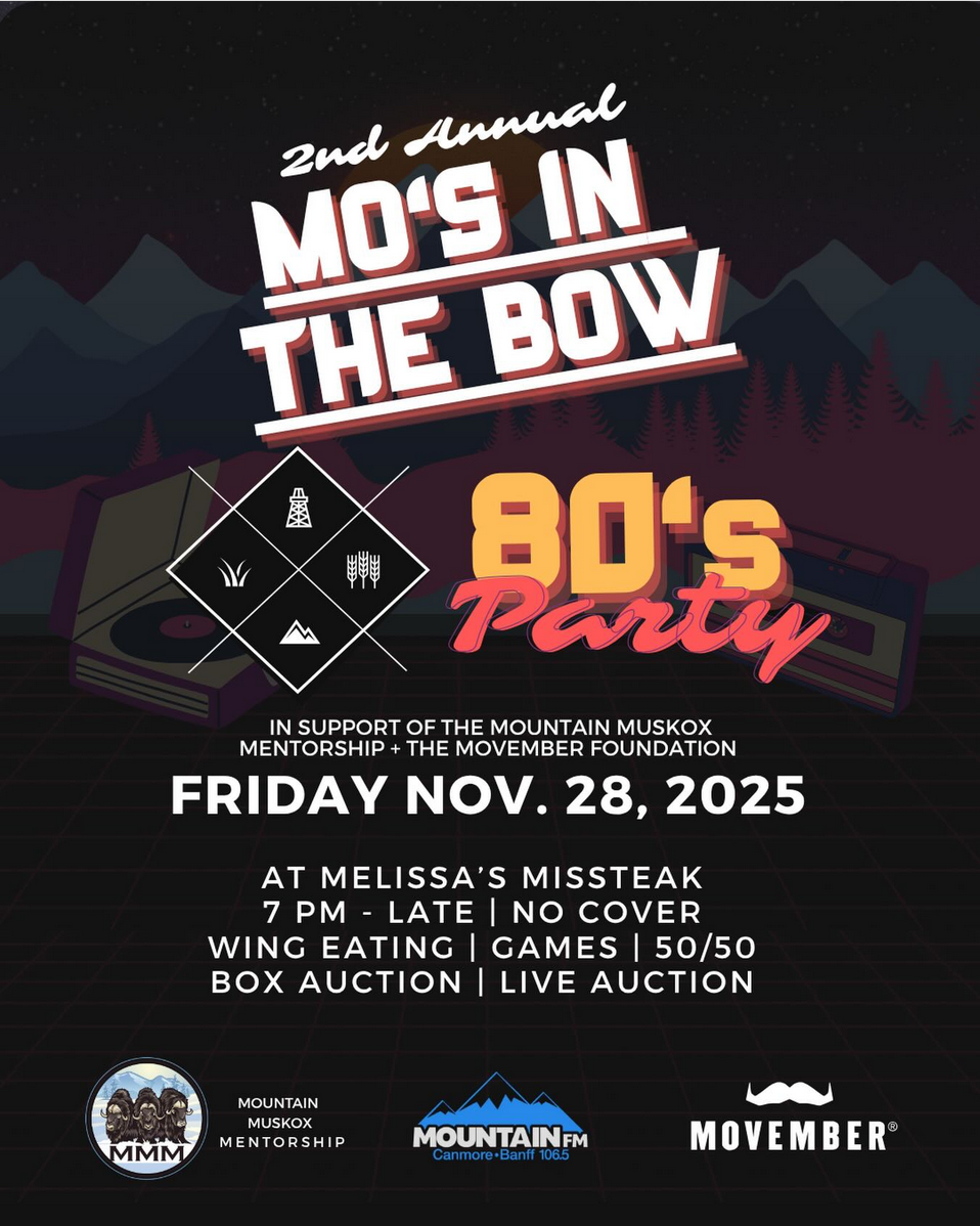 We’re stoked to host the 2nd Annual Mo’s in the Bow 80’s Party, raising funds for the Mountain Muskox Mentorship and Movember Foundation 🙌