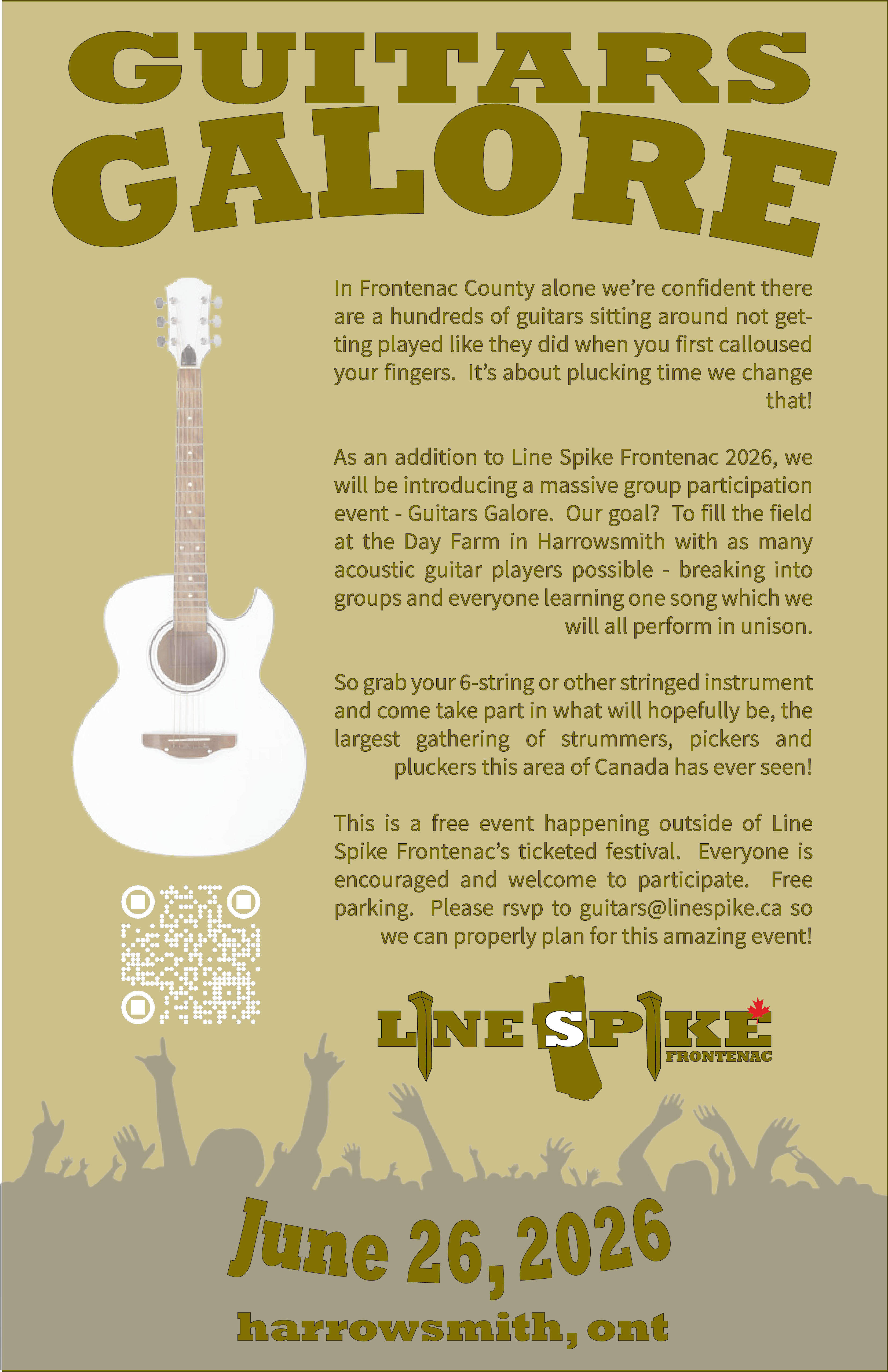 As an addition to Line Spike Frontenac's Power of Positivity festival 2026, we will be introducing a massive group participation event - Guitars Galore.